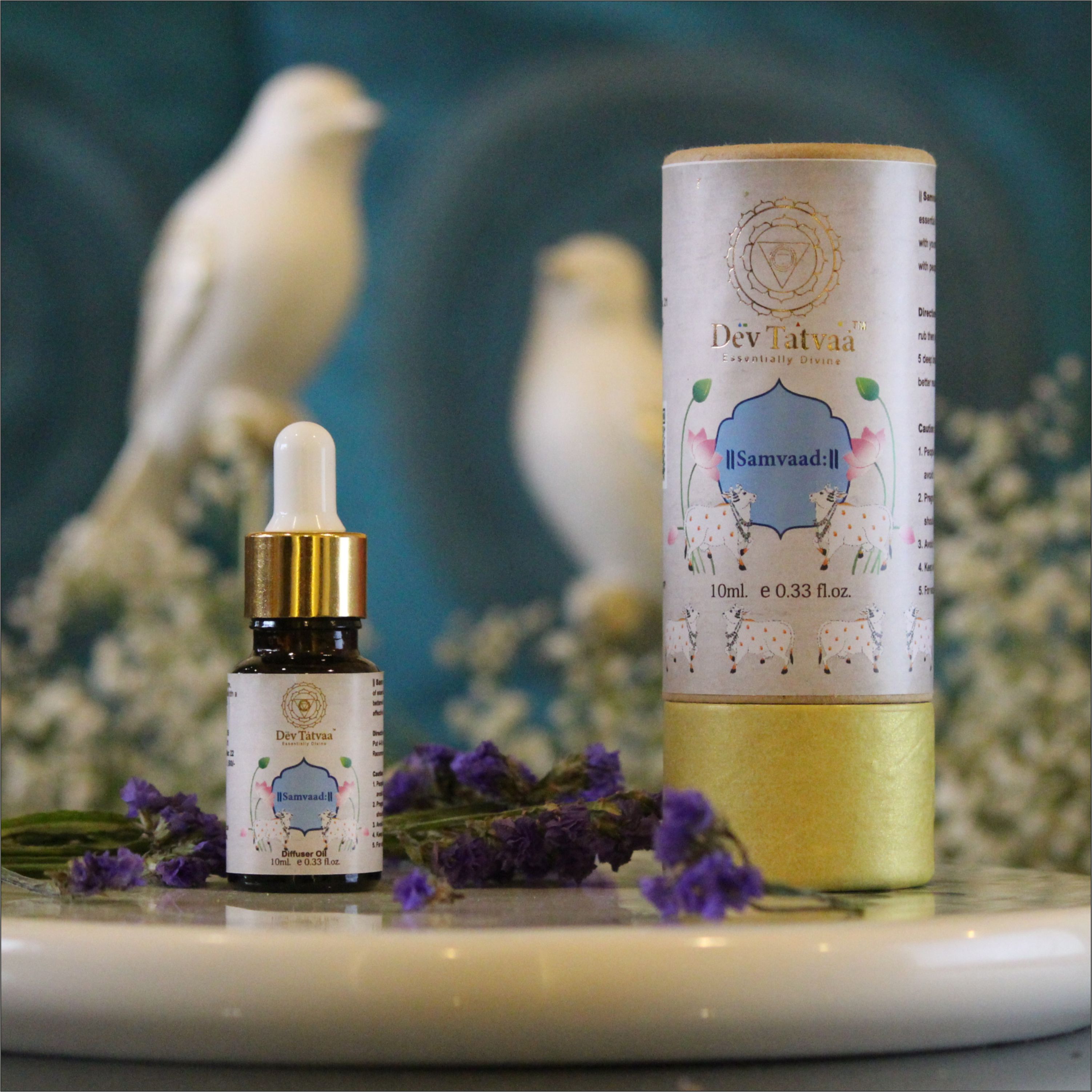 Add to Cart Communication Samvaad Blended Oil In today's era, various forms of digital communication have greatly increased. Despite the increase in choices and specificity, people still fall prey to misunderstandings in their relationships. Suppressed emotions cause stress as well as other psychosomatic disorders, one of them majorly concern being Thyroid. Samvaad helps you to express yourself in various arenas of your personal and work life. Benefits: It increases compassionate communication. It helps to entrust the unfolding of events in life. It promotes self-communication as well as communication with society. It relieves over-analytical nature. Helps to declutter your life as well as thoughts. Key ingredients: Orange, Chamomile, Cedarwood, Holy Basil, Jojoba oil, fortified with a secret divine tatvaa and love. How to use: Rub enough oil on wrists and palms. Inhale the aroma with deep breaths 4 - 5 times. Use it twice a day for better results. Who can use: People facing communication issues. People not able to put forth their ideas in an effective manner. People having issues with self-communication. Caution: People allergic to natural oils should avoid direct contact. Pregnant women and kids below 7 yrs. should refrain from using essential oils. Avoid direct contact with eyes. Store in cool & dry place, away from sunlight For external use only. Actual packaging may vary from the picture shown above. (Add this below the product matter for all products) ₹ 900.00 Add to Cart
