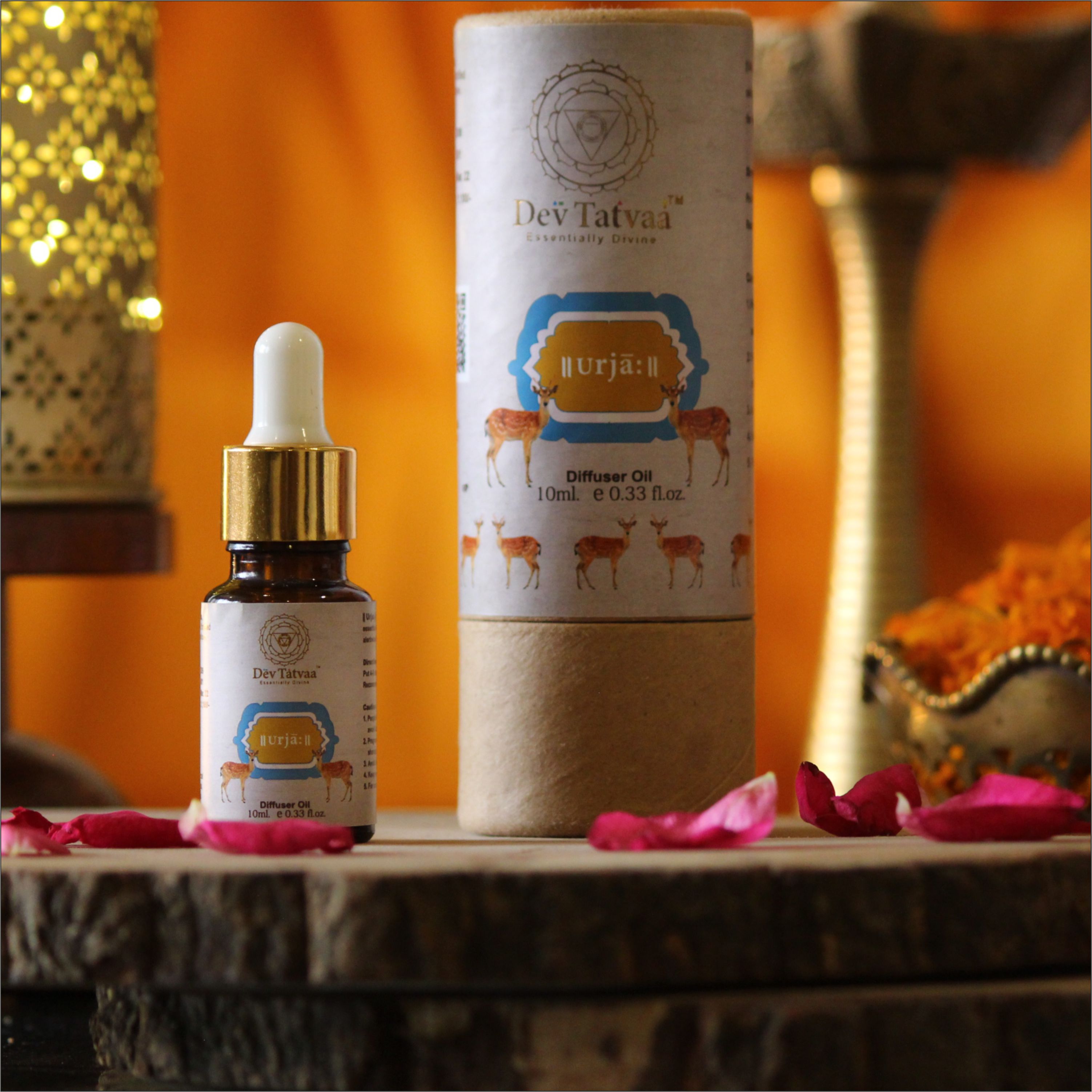 Add to Cart Energy Urja Blended Oil Lack of energy has been highly noted in today's world. Although the reasons are several, ranging from improper sleep cycles, poor diet, stress to blue light radiation, etc. Working on these causes can seem like a mammoth task. With Urja, our goal is to enable people to feel energetic, mentally and physically in a natural way. Benefits: It increases physical as well as mental energy. It enhances sense of security and grounding. It uplifts mind and spirit. It strengthens will power, activates initiative and restores determination. It rekindles fire within our soul and helps to regain lost passion for life. Key ingredients: Nutmeg, Cypress, Grapefruit, Ginger, Spearmint, Jojoba oil, fortified with a secret divine tatvaa and love. How to use: Rub enough oil on wrists and palms. Inhale the aroma with deep breaths 4 - 5 times. Use it twice a day for better results. Who can use: People who have lost the passion for life. People who get tired very soon. People who has high pressure jobs. People recouping from chronic illness. Caution: People allergic to natural oils should avoid direct contact. Pregnant women and kids below 7 yrs. should refrain from using essential oils. Avoid direct contact with eyes. Store in cool & dry place, away from sunlight For external use only. Actual packaging may vary from the picture shown above. (Add this below the product matter for all products) ₹ 750.00 Add to Cart