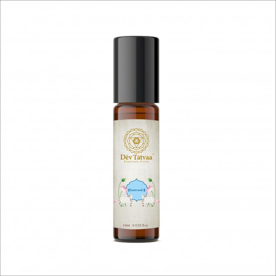 Add to Cart Communication Samvaad Blended Oil In today's era, various forms of digital communication have greatly increased. Despite the increase in choices and specificity, people still fall prey to misunderstandings in their relationships. Suppressed emotions cause stress as well as other psychosomatic disorders, one of them majorly concern being Thyroid. Samvaad helps you to express yourself in various arenas of your personal and work life. Benefits: It increases compassionate communication. It helps to entrust the unfolding of events in life. It promotes self-communication as well as communication with society. It relieves over-analytical nature. Helps to declutter your life as well as thoughts. Key ingredients: Orange, Chamomile, Cedarwood, Holy Basil, Jojoba oil, fortified with a secret divine tatvaa and love. How to use: Rub enough oil on wrists and palms. Inhale the aroma with deep breaths 4 - 5 times. Use it twice a day for better results. Who can use: People facing communication issues. People not able to put forth their ideas in an effective manner. People having issues with self-communication. Caution: People allergic to natural oils should avoid direct contact. Pregnant women and kids below 7 yrs. should refrain from using essential oils. Avoid direct contact with eyes. Store in cool & dry place, away from sunlight For external use only. Actual packaging may vary from the picture shown above. (Add this below the product matter for all products) ₹ 900.00 Add to Cart