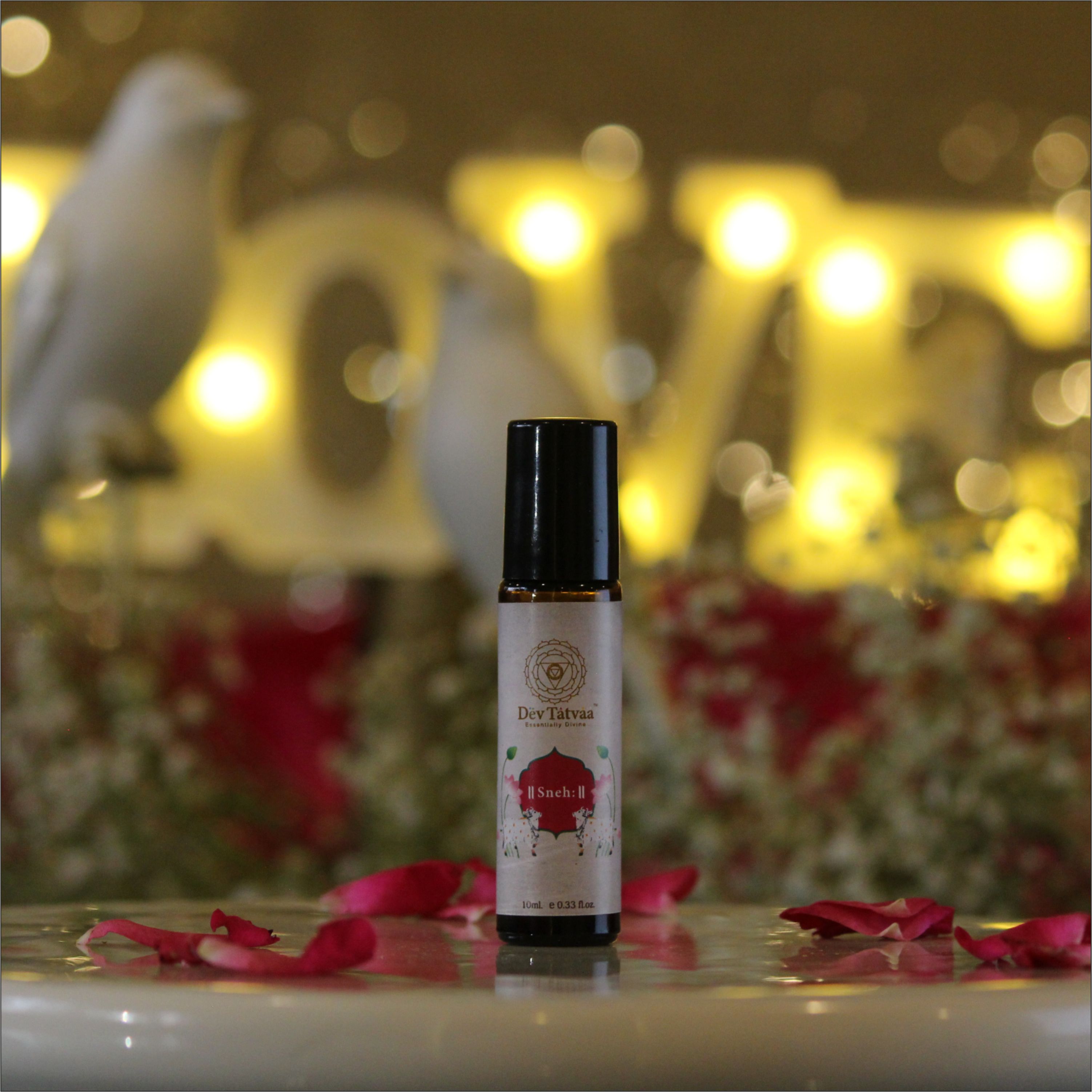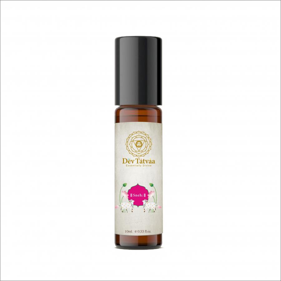 Add to Cart Love Sneh Blended Oil Love comes in various forms. When one is able to love unconditionally, a major transformation is seen in relationships with self and others. Sneh helps to increase love and bonding between couples. Benefits: It removes anxiety and emotional crisis. It balances extreme mood swings. It promotes self-love and unconditional love towards others. Key ingredients: Geranium, Palmarosa, Mandarin, Bergamot, Jojoba oil, fortified with a secret divine tatvaa and love. How to use: Take 4 - 5 drops in hand. Rub them gently. Inhale the aroma with deep breaths 4 - 5 times. Who can use: People undergoing trauma and emotional crisis. People with lack of self-love. Healers as they tend to absorb emotions of others. Caution: People allergic to natural oils should avoid direct contact. Pregnant women and kids below 7 yrs. should refrain from using essential oils. Avoid direct contact with eyes. Store in cool & dry place, away from sunlight For external use only. Actual packaging may vary from the picture shown above. (Add this below the product matter for all products) ₹ 900.00 Add to Cart