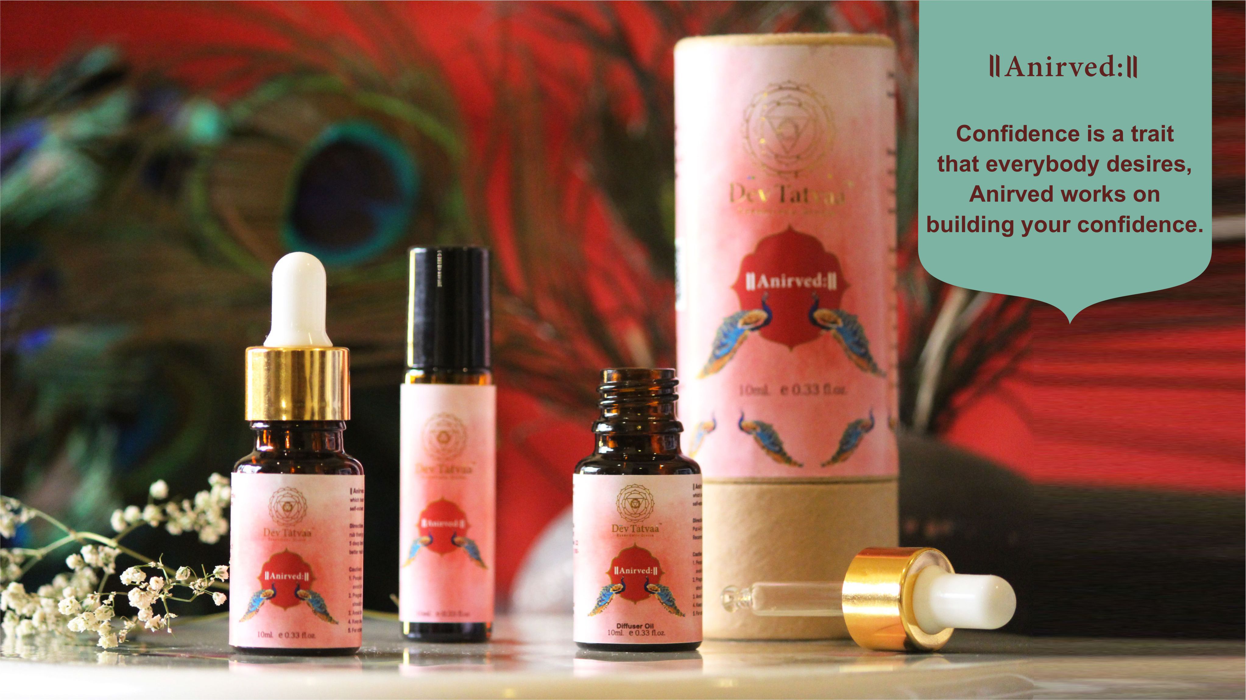 Add to Cart Confidence Anirved Blended Oil Confidence is a trait that everybody desires. Standards set by media provide a great challenge to youngsters as well as adults. Peer and performance pressure results in low confidence, inferiority complex, etc. Anirved helps to boost your self confidence. Convenience is a privilege. When you're on the move and don't have the time or space to use a dropper bottle, Roll-ons come to the rescue. Just apply a bit on your palms, inhale the aroma with deep breaths, and you're good to go. Benefits: It increases self-confidence. It helps to regain lost drive and ambition. It helps to lessen procrastination. It helps to reinitiate or get started with the project that was put on shelf. Key ingredients: Cedarwood, Ginger, Fennel, Cinnamon, Jojoba oil, fortified with a secret divine tatvaa and love. How to use: Rub enough oil on wrists and palms. Inhale the aroma with deep breaths 4 - 5 times. Use it twice a day for better results. Who can use: People having low self-esteem and inferiority complex. People who are not able to talk with their senior or higher authority. People who have got into a loop of procrastination. People who are unable to finish what they have started. Caution: People allergic to natural oils should avoid direct contact. Pregnant women and kids below 7 yrs. should refrain from using essential oils. Avoid direct contact with eyes. Store in cool & dry place, away from sunlight For external use only. Actual packaging may vary from the picture shown above. (Add this below the product matter for all products) ₹ 750.00 Add to Cart